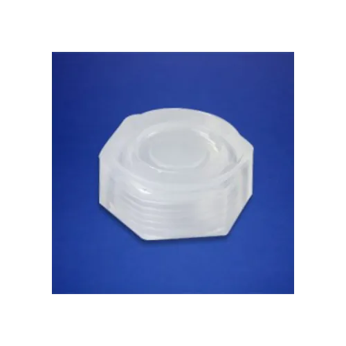Bouchon fileté en PFA de 53 mm avec cannelure de serrage pour récipients de minéralisations, digestions. Clef de serrage 011-001-019 recommandée pour une facilité d’utilisation. (1)Références croisées