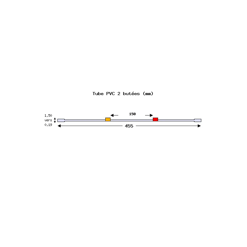 Tube de pompe péristaltique deux butées PVC Tygon R3607/R3603 Ecart. 150 mm entre butées – embouts préformés – DI 0,51 mm – orange/jaune -