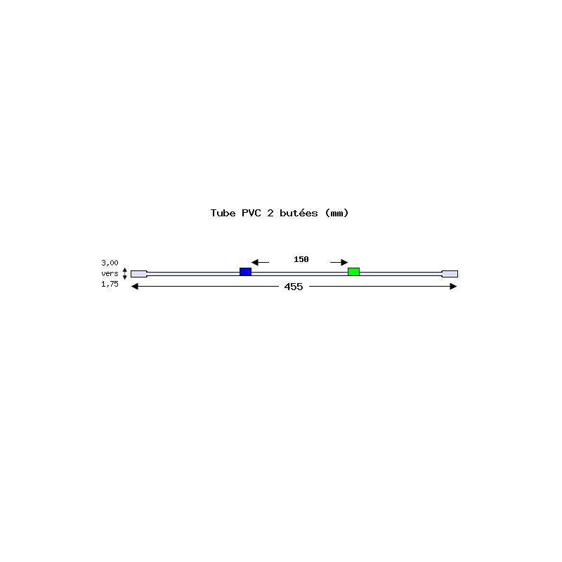 Tube de pompe péristaltique 2 butées PVC Tygon R3607/R3603 Ecart. 152 mm entre butées – DI 1,75 mm – bleu-vert