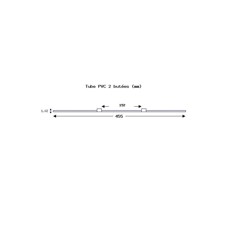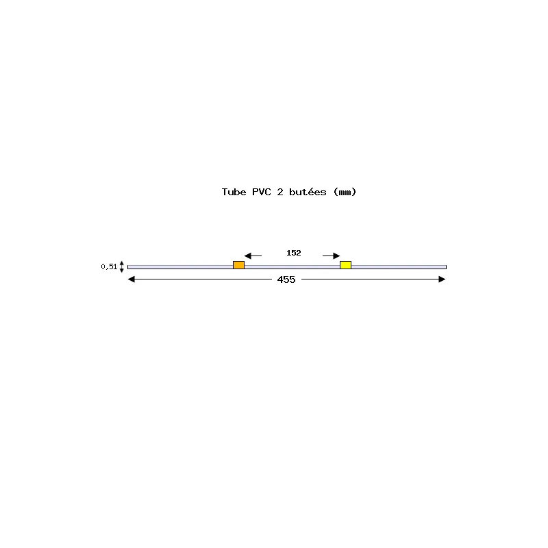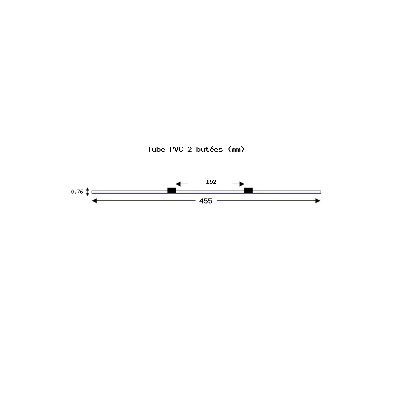 Tubes en PVC avec 2 butées espacées de 152 mm pour une longueur totale de 455 mm