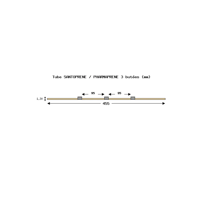 Tube de pompe péristaltique deux butées – PVC Tygon R3607/R3603 – Ecart. 152 mm entre butées – DI 1,30 mm – gris/gris