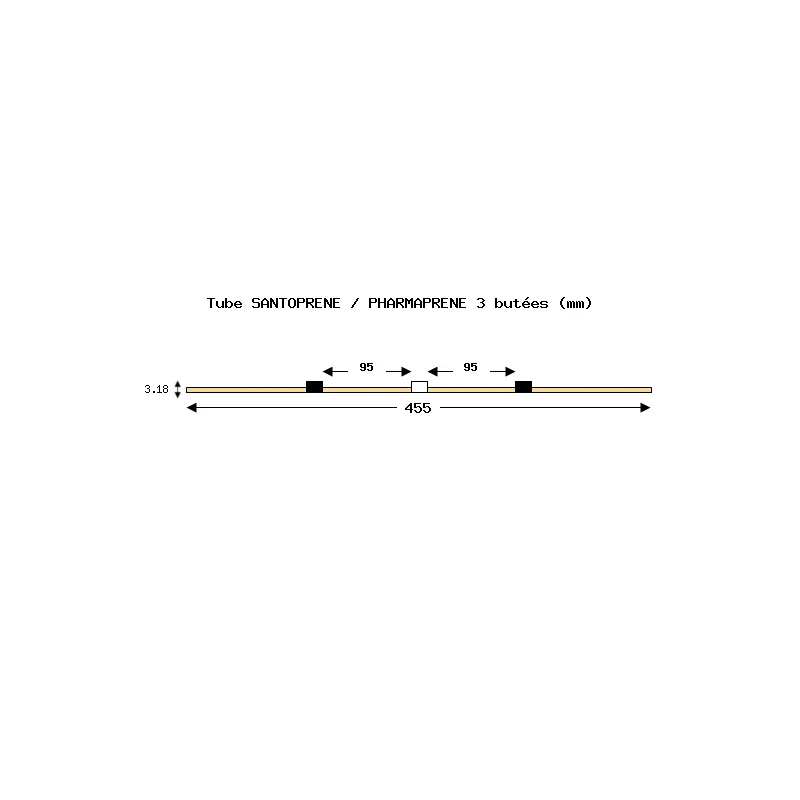 Tube de pompe péristaltique deux butées – PVC Tygon R3607/R3603 – Ecart. 152 mm entre butées – Long. 455 mm – DI 0,38 mm – orange/vert -