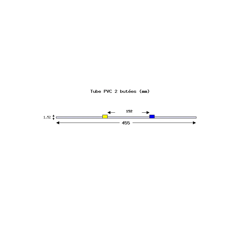 PVC type R3607/R3603 ou équivalent - 2 butées avec écart de 152 mm - Longueur 455 mm