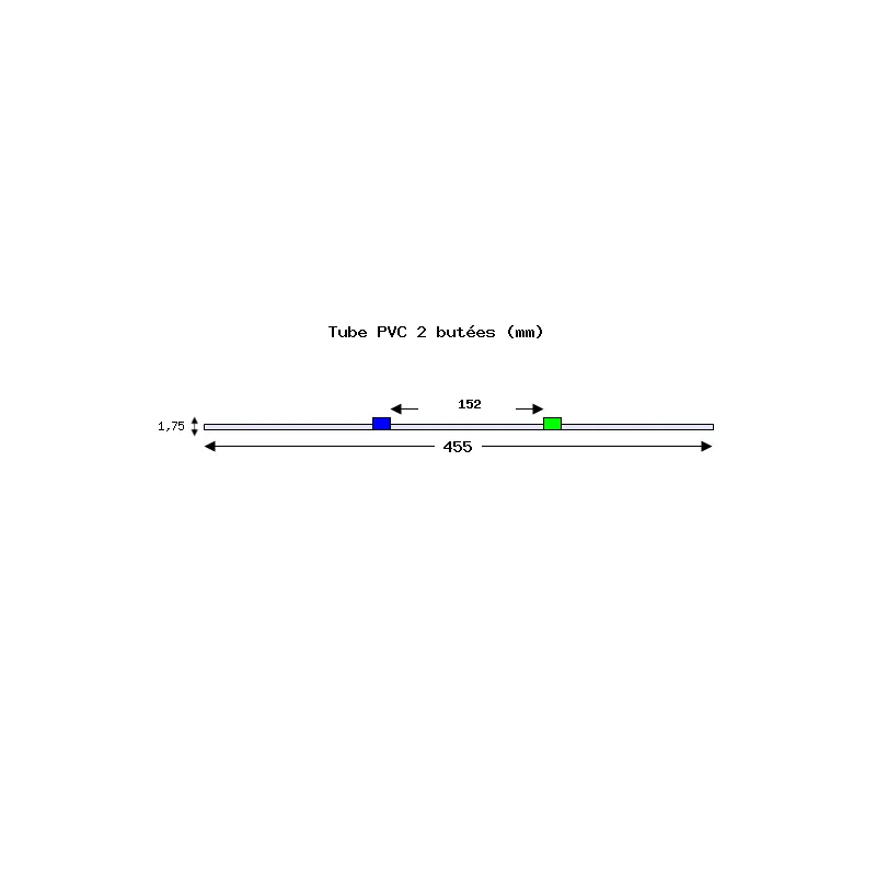 PVC type R3607/R3603 ou équivalent - 2 butées avec écart de 152 mm - Longueur 455 mm