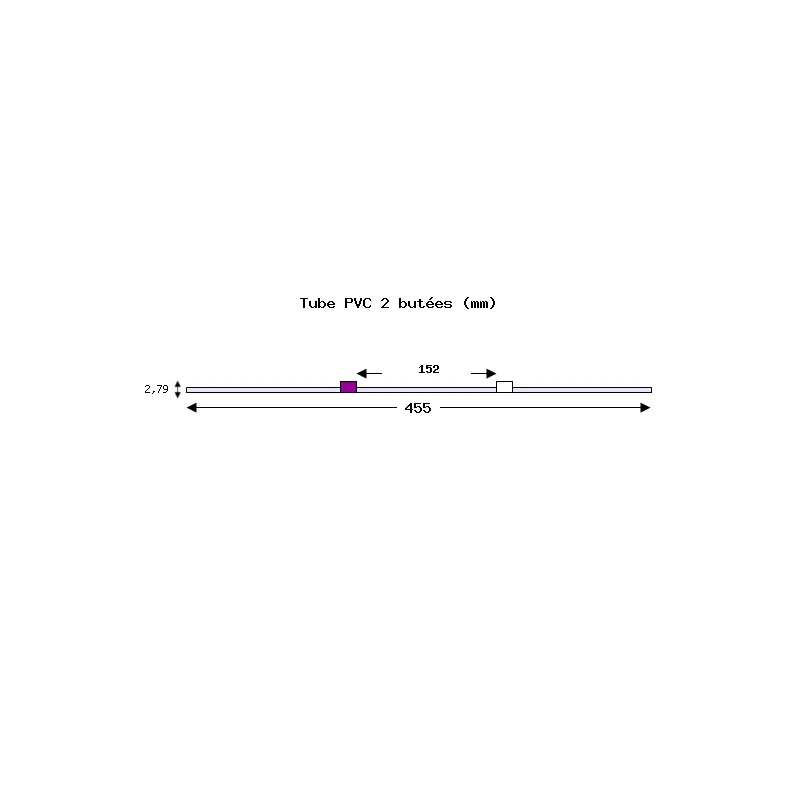 Tube de pompe péristaltique deux butées – PVC Tygon R3607/R3603 – Ecart. 152 mm entre butées – DI 2,79 mm – violet/blanc
