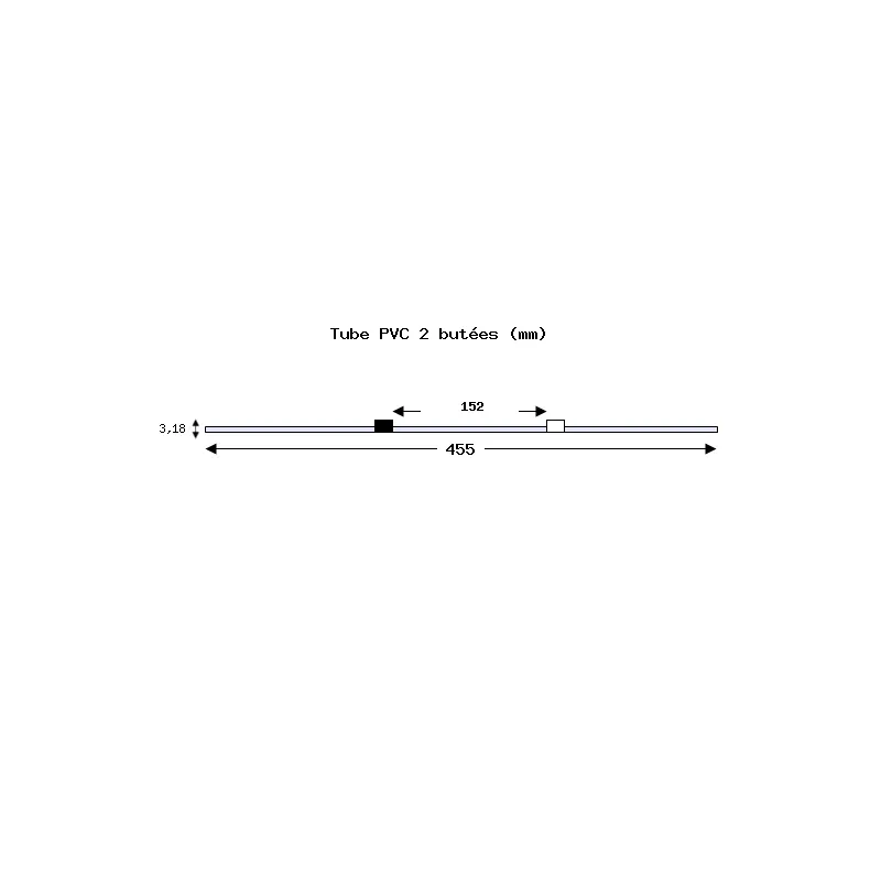 PVC type R3607/R3603 ou équivalent - 2 butées avec écart de 152 mm - Longueur 455 mm