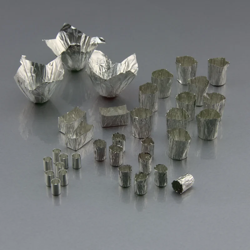 Capsules plissées pour solides en argent 4 x 6 mm (0,017 g – 0,07 ml) en boite noire plastique avec couvercle transparent
