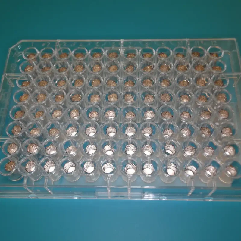 Capsules plissées pour solides en étain 4 x 6 mm (0,015 g – 0,07 ml) pré-nettoyées dans boite en plastique 96 puits