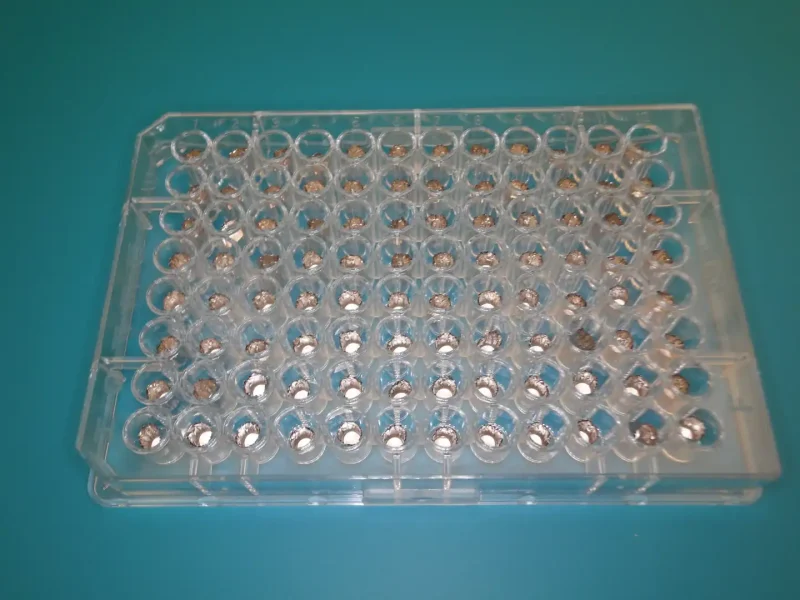 Capsules plissées en étain pour solides, 5 x 9 mm (0,033 g – 0,15 ml) pré-nettoyées dans plaque en plastique (/96)