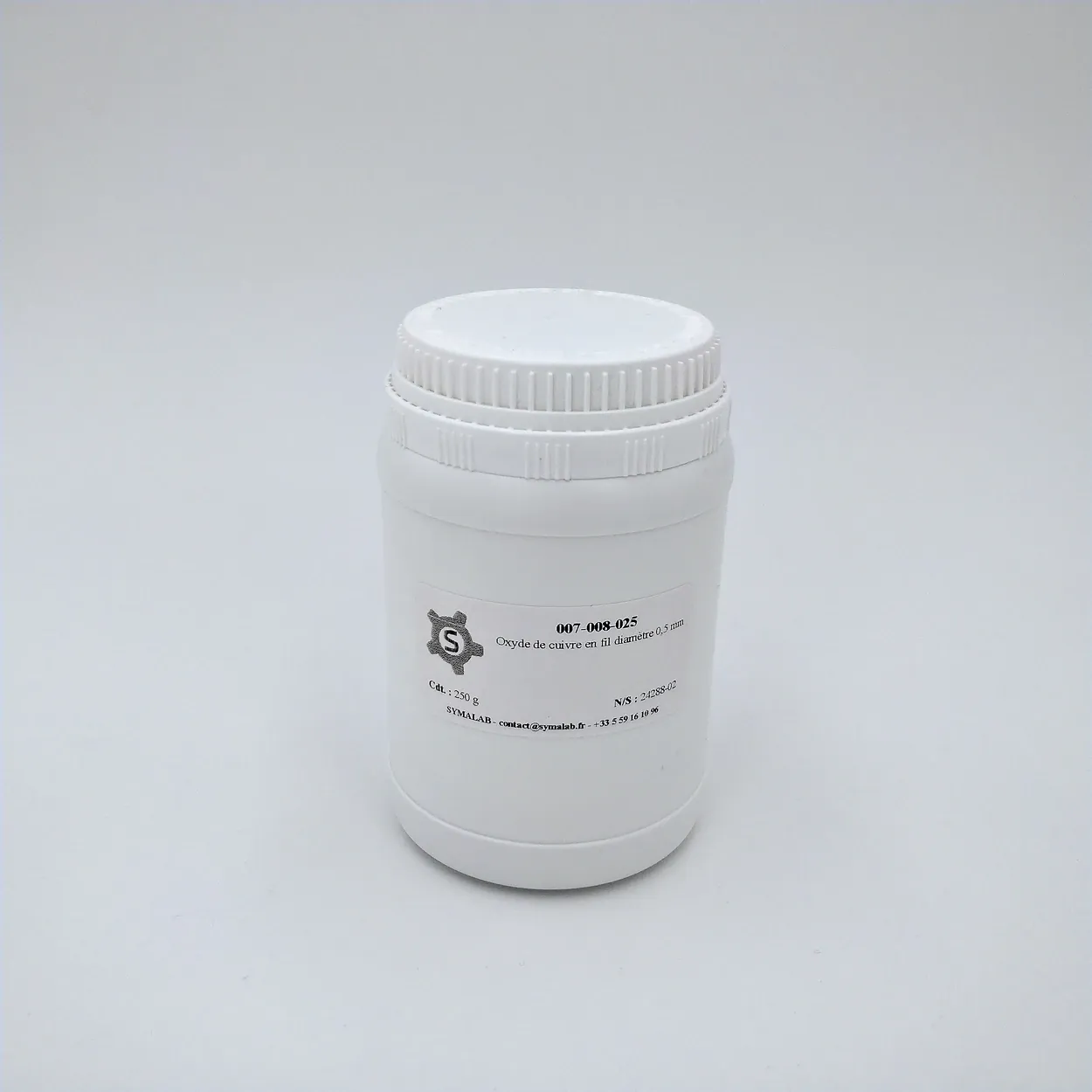 Oxyde de cuivre (qualité +) en fil diamètre 0,5 mm pour analyses par méthode Dumas – CHONS. Conditionné dans flacon plastique.