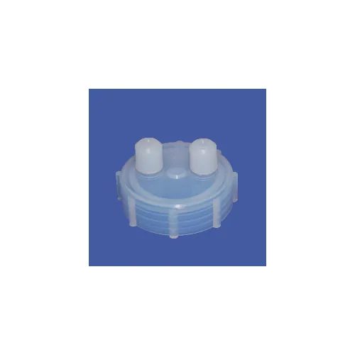 Bouchon fileté en PFA de 53 mm avec cannelure de serrage pour récipients de minéralisations, digestions avec 2 ports pour tube DE 1/4″. Clef de serrage 011-001-019 recommandée pour une facilité d’utilisation. (1)