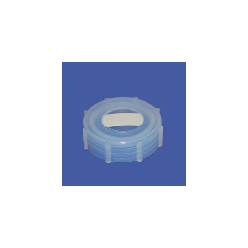 Bouchon fileté en PFA de 53 mm avec cannelure de serrage pour récipients de minéralisations, digestions avec étiquette Nomex. Clef de serrage 011-001-019 recommandée pour une facilité d’utilisation. (1)
