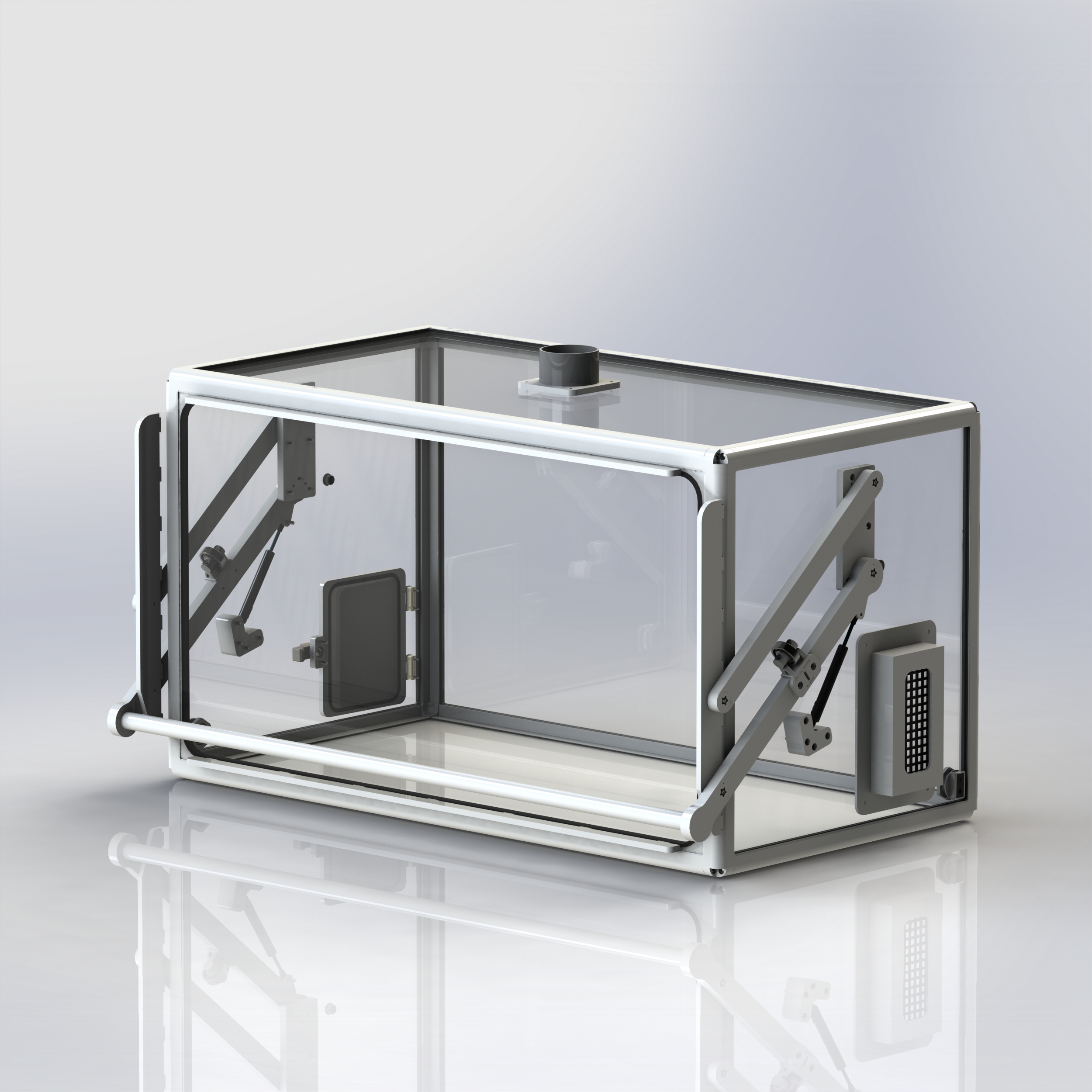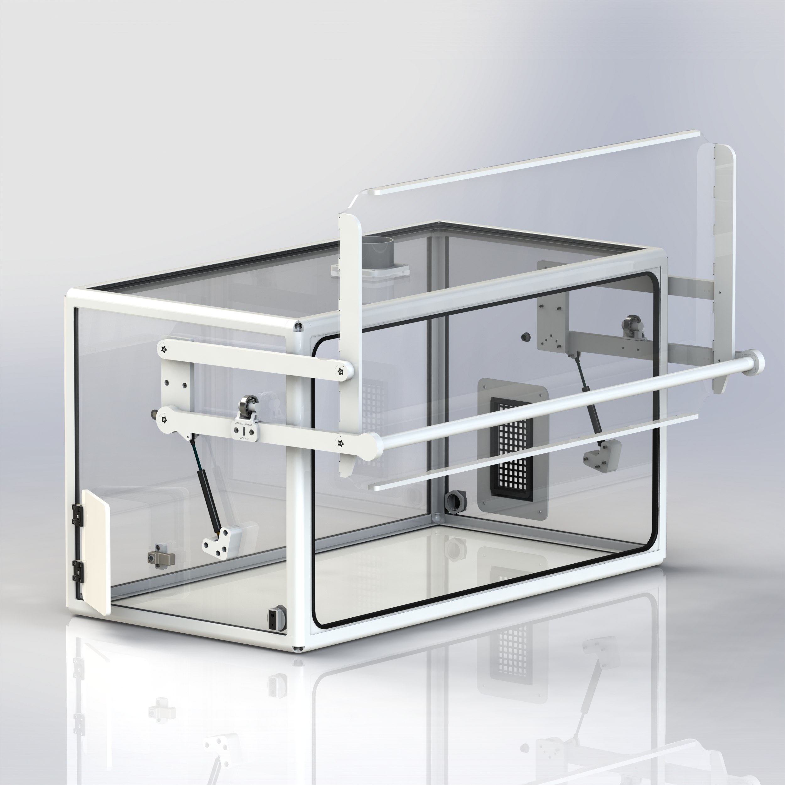 Enceinte PureProtec pour Teledyne Labs (cetac) XLR-860Enceinte de protection PureProtec® V8 avec nouvelles cornières à joints PVC souple intégrés – Pour passeur automatique XLR-860 Teledyne Cetac – Dimensions internes de travail (LxPxH mm) 1220x630x670 – Environ 37 kg – Porte basculante-débordante avec raidisseurs blancs horizontaux et verticaux. Entrée filtre HEPA 13 latérale droite. Porte latérale en PVC blanc 10 mm pour accès arrière gauche – Parois en PVC transparent 8 mm, dessous en PVC blanc 15 mm. Bras long, poignée et bras court en PVC blanc – Configuré pour système d’extraction standard 100 mm – Livré complet avec filtre latérale HEPA 13 et sortie extraction standard 100 mm.
