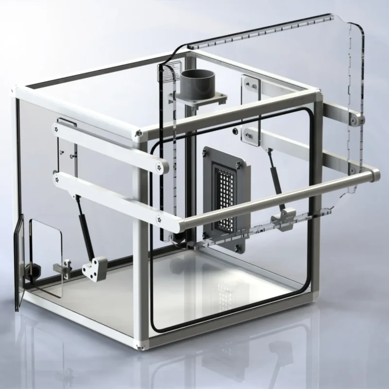 Enceinte PureProtec® version 5 (PP5) – Dimensions utiles (LxPxH mm) 500x600x730 avec deux passages câbles – Filtration HEPA 13 en entrée + charbon actif – extraction des vapeurs mécanique 100 – Selon dessin 0003-005 Ind7 – 006 – Développé à l’origine pour un passeur Teledyne Labs (Cetac) ASX-280 (1) -