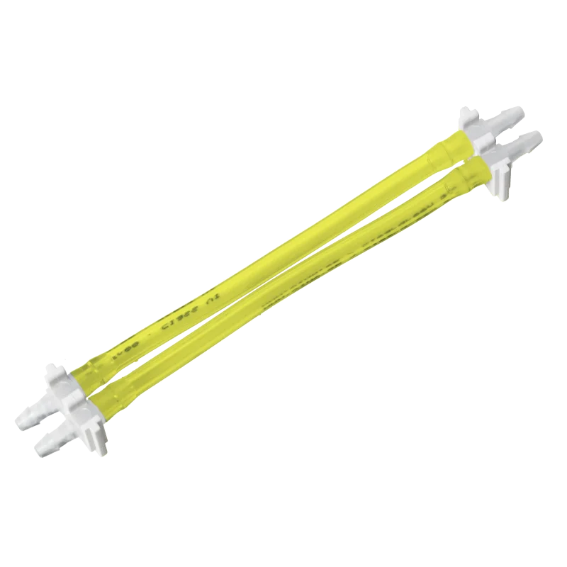 Tubes de pompe péristaltique 2 canaux jaunes transparent (Tygon® Solvaflex ou équivalent) avec deux taquets blancs de positionnement – Pour échantillons huiles, lubrifiants, organiques, pétroles – Diamètres internes 2 x 3,0 mm – Pour passeur automatique Teledyne Labs (Cetac) ASX-280, ASX-560 et XLR-860