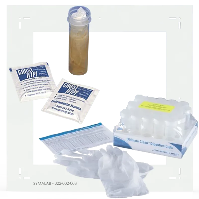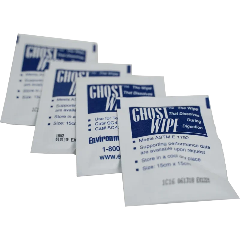 Kit de démarrage lingettes GhostWipes – comprend 25 lingettes 15×15 cm humidifiées à l’eau distillée pour analyse de plomb et béryllium, 25 tubes UltimateCup™ 50 ml (max. 68 ml) en PP avec bouchons transparents – Pré-nettoyés et conditionnés sous atmosphère protectrice – livré avec certificat d’analyse, 1 paire de gant et 1 gabarit 300 x 300 mm en PVC 2 mm réutilisable