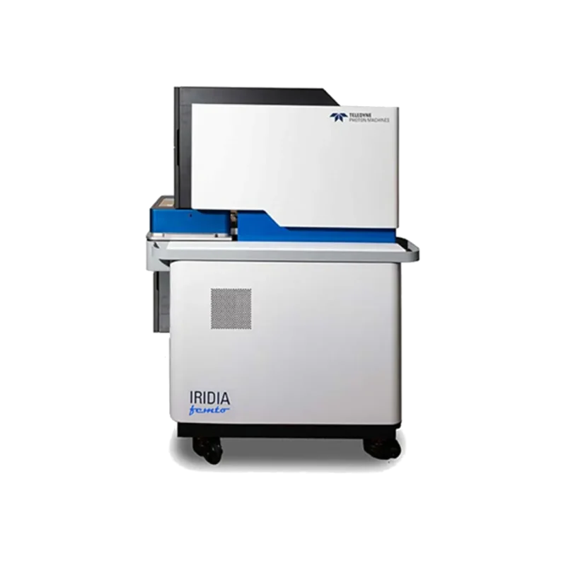 Ablation Laser Iridia Femto Teledyne Photon Machines – Source solide Light Conversion Pharos PH-2 @257 nm, 190fs, 1-1000 000 Hz (4000 Hz) à source laser refroidit à l’eau incluant refroidisseur intégré au châssis, atténuateur optique, ordinateur de contrôle – Deux configurations possibles pour chambre d’ablation « Cobalt » non fournie : normal ou Cryo). Deux cellules possibles à mode Z dynamique pour chambre Cobalt (Long Pulse ou Fast Pulse)