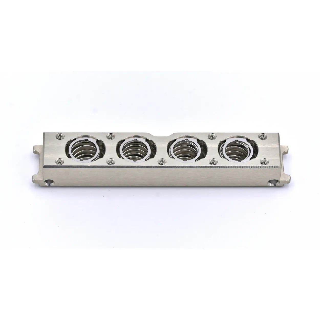 Connecteur métallique avec filetage d’un côté et connecteur rapide pour tube de 6 mm à l’autre extrémité, plat de 3 mm sur le côté pour serrer – Pour ablation laser Iridia Teledyne Photon machines -