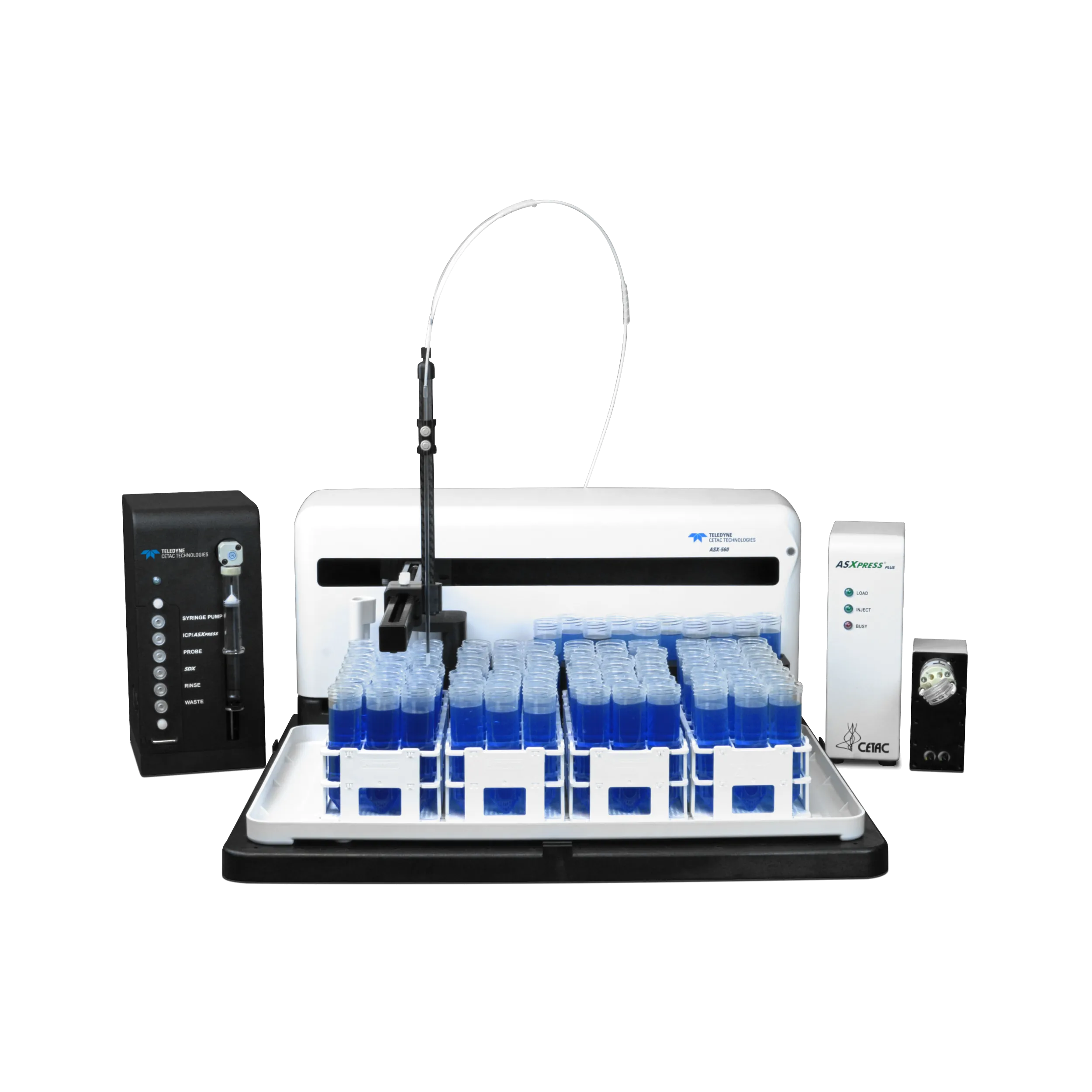 Passeur d’échantillons Teledyne Labs (Cetac) ASX-560 à quatre portoirs et déplacement X-Y-Z simultanés – Livré avec quatre portoirs de 60 positions et aiguille de prélèvement DI 1 mm.Références croisées