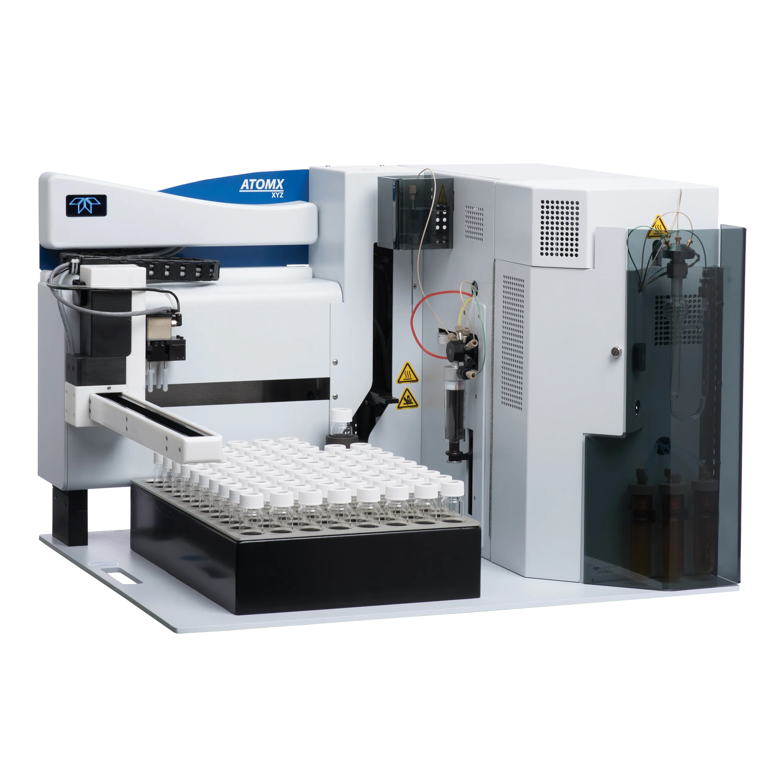 Le rinçage au méthanol, la capacité de dilution et trois récipients d'addition pour les étalons standard sont tous fournis en standard sur l'Atomx XYZ.